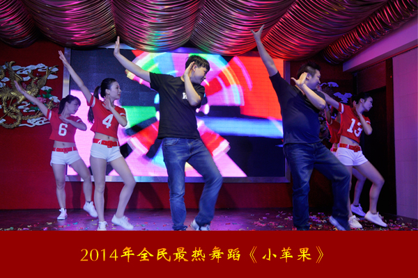 晚會(huì)文藝匯演共十余個(gè)節(jié)目,其中2014年全民最火舞蹈《小蘋果》帶來(lái)了無(wú)限的激情與熱情,而企業(yè)詩(shī)朗誦則帶來(lái)了感動(dòng)和感恩,還有穿越版的《唐伯虎與點(diǎn)秋香——外傳》讓現(xiàn)場(chǎng)觀眾捧腹大笑。
